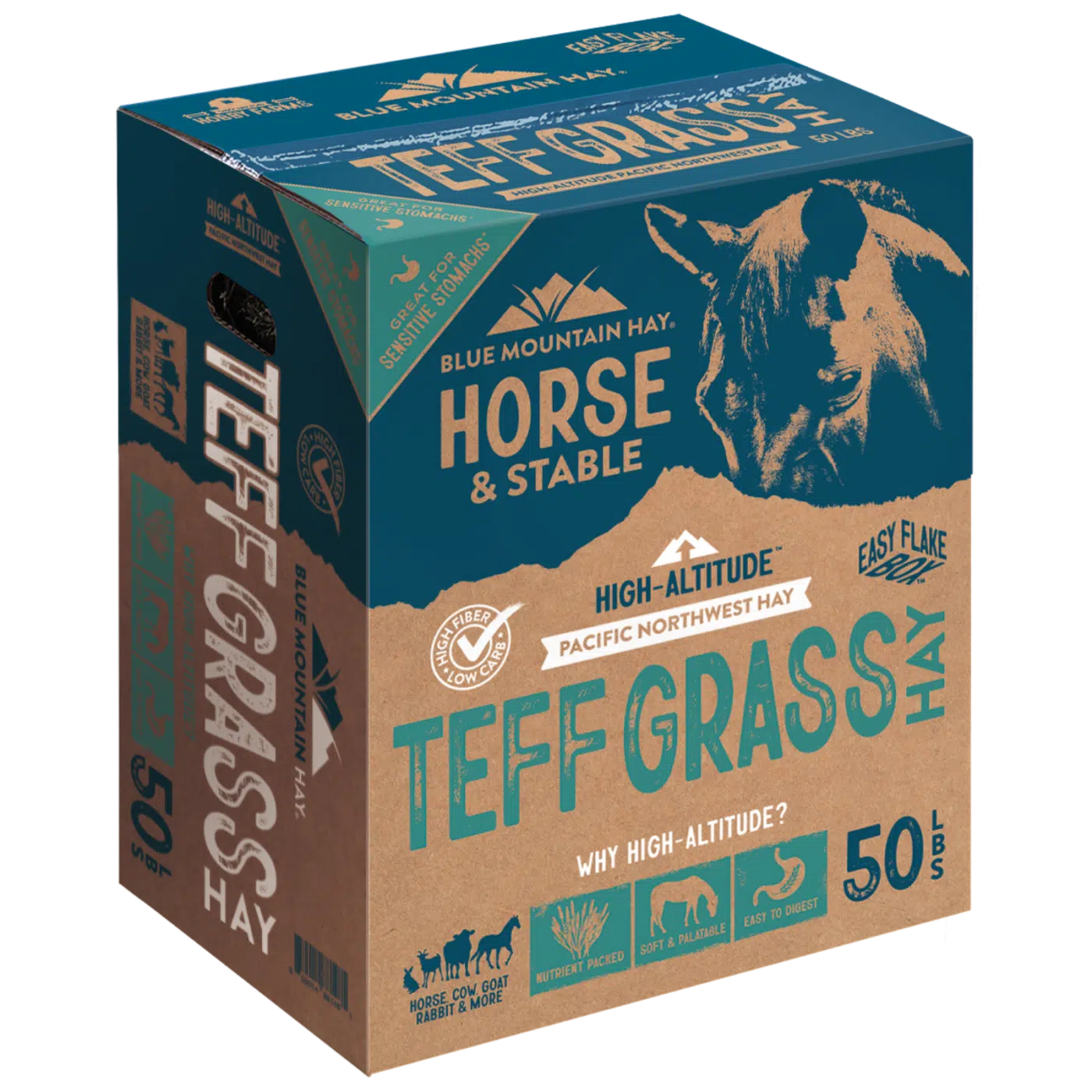 Alfalfa Hay is high-altitude hay that is cut and packed with easy flaking in mind. Unlike other boxed loose hay, Blue Mountain Hay is tightly packed while maintaining the ability to flake easily, resulting in a simple, clean feeding experience. Just open and flake away!